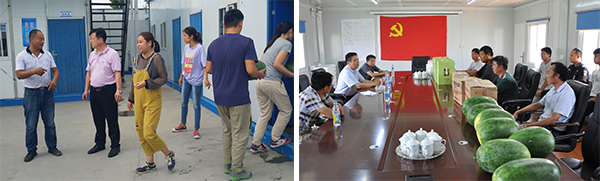 進入盛夏,高溫炙烤,暑氣逼人,尤其是入伏以來,氣溫更是居高不下,為確保施工現(xiàn)場安全生產(chǎn),保障一線管理人員及工人的人身安全和身體健康,7月13日至23日,公司領(lǐng)導(dǎo)班子全體成員組成八個慰問組奔赴濟南、青島、濰坊、德州、濟寧、鄭州等多個地市的22個項目部,開展了以“情系一線 夏送清涼”為主題的慰問活動。
